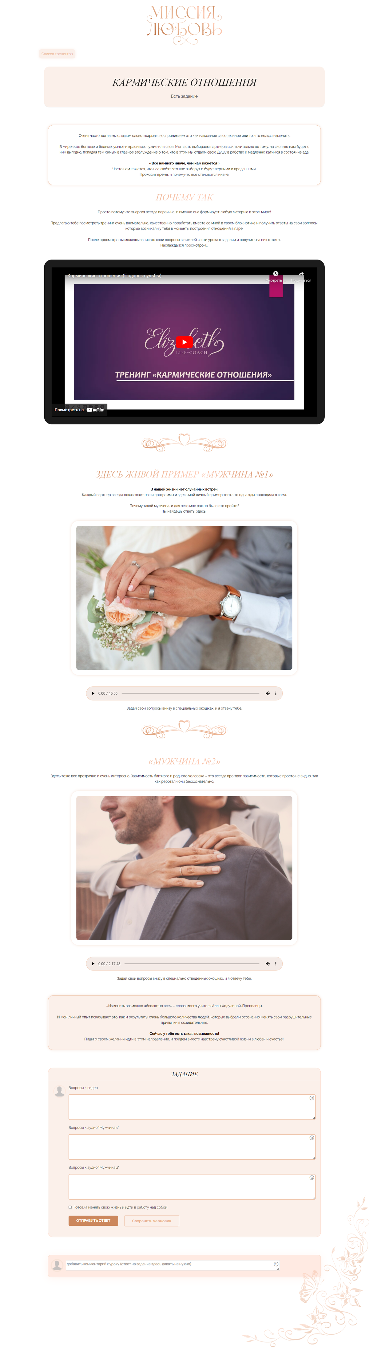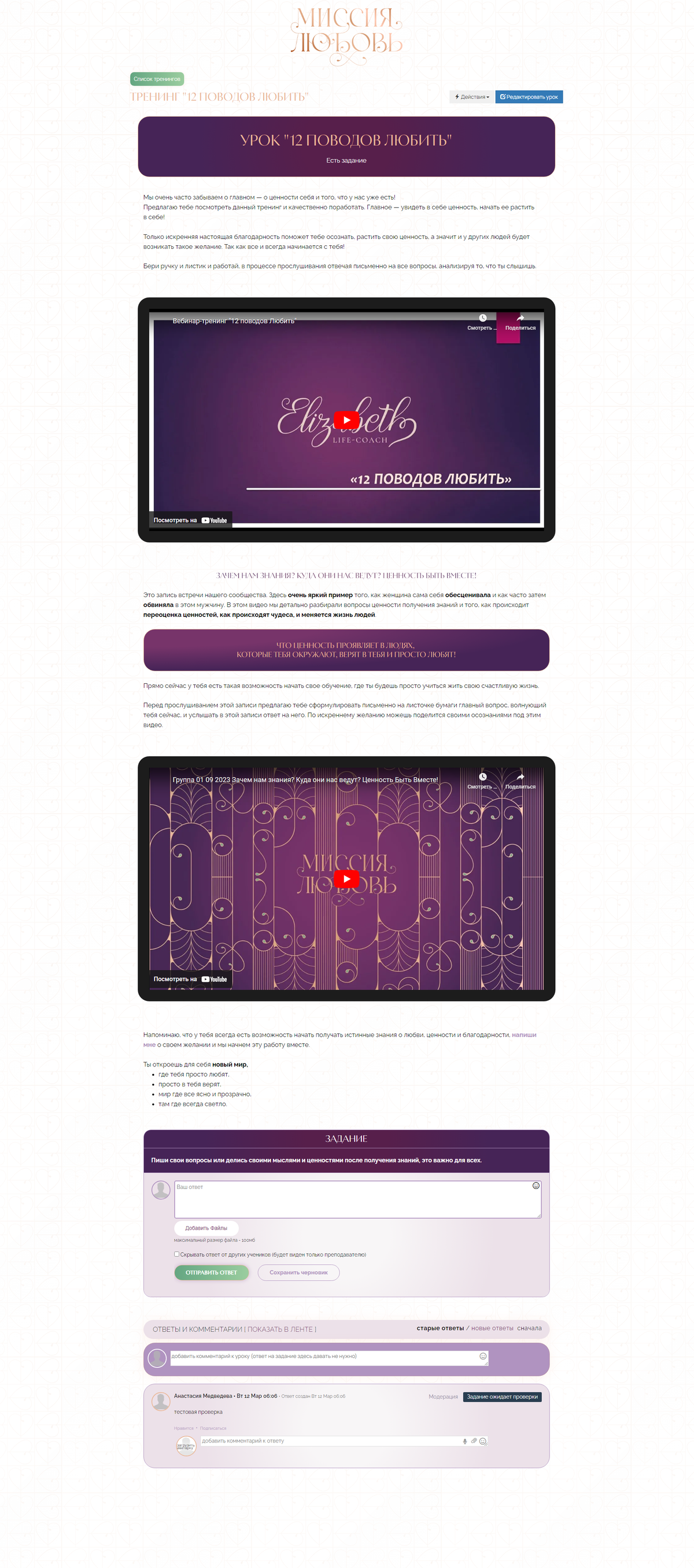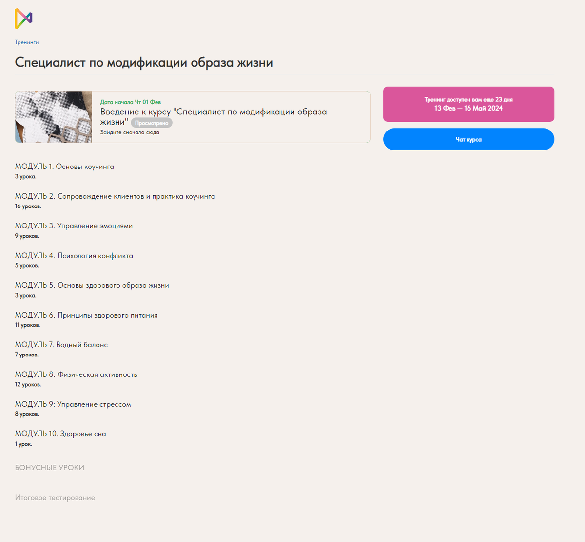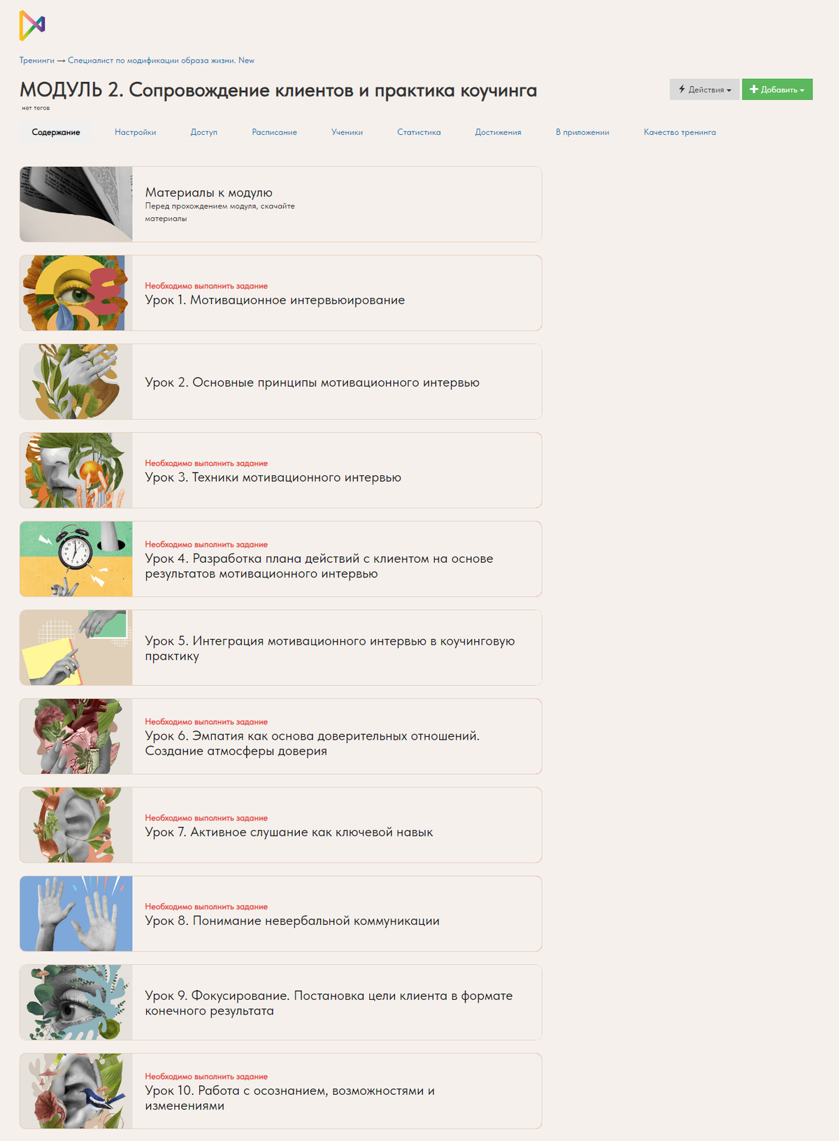 Страница тренингов